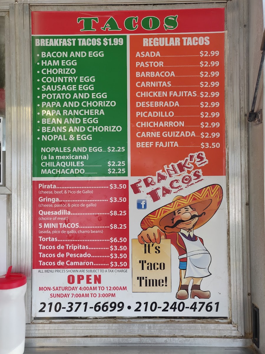 Welcome to Frank Tacos, a hidden gem nestled in San Antonio, TX, just off the 1604 Loop. This culinary refuge offers an impressive range of authentic tacos that capture the heart and soul of traditional Mexican fare.